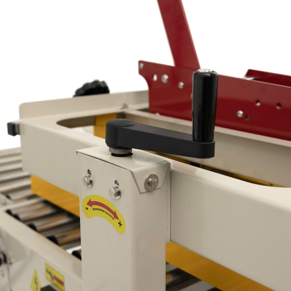 это профессиональное оборудование для быстрой и аккуратной заклейки верхних и нижних стыков картонных коробов клейкой лентой (скотчем). Модель предназначена для малых и средних предприятий в сфере пищевого производства, упаковки и фасовки, складской логистики и интернет-торговли. Заклейщик оснащён боковыми конвейерными ремнями для автоматической протяжки короба, что обеспечивает непрерывный процесс упаковки без необходимости постоянного присутствия оператора.