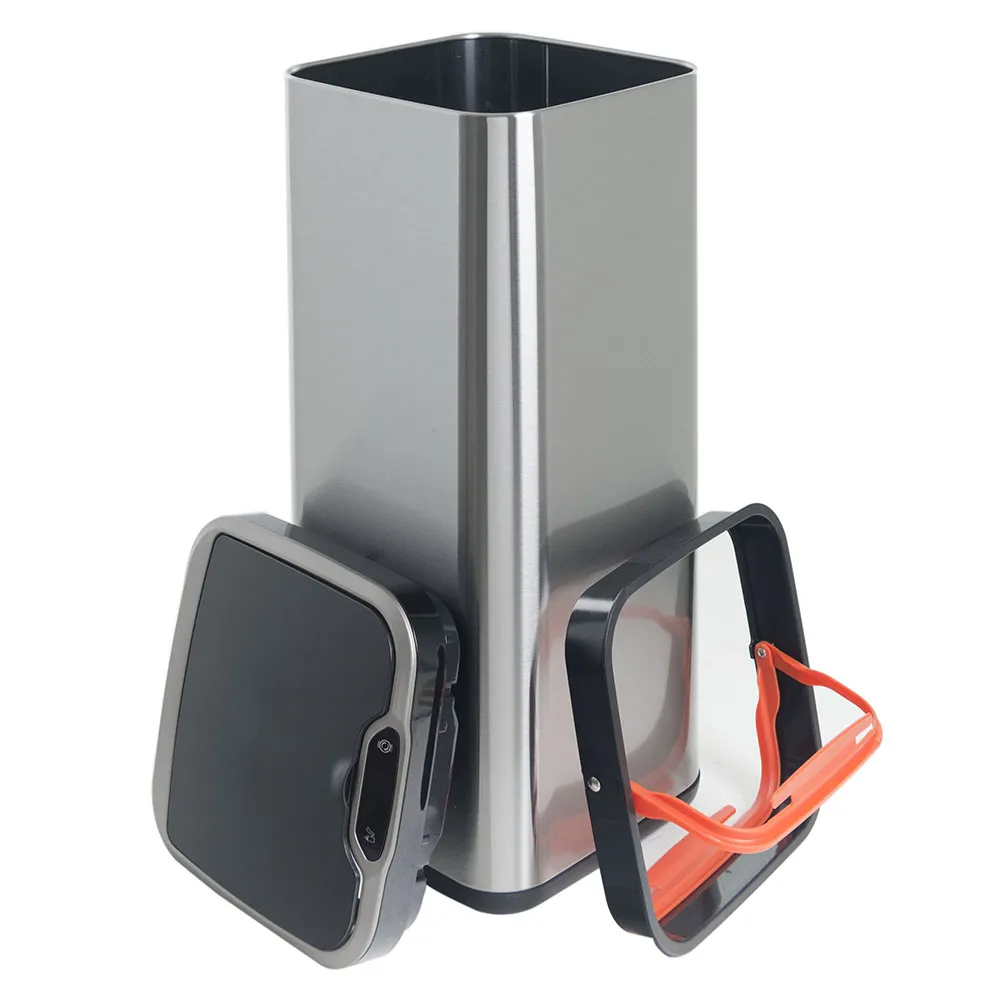 Стальной корпус сочетает в себе долговечность и современный стиль. Благодаря разнообразию объёмов, сенсорные вёдра используют не только дома: на кухне, в санузле, в детской комнате; но и в офисах или обеденных зонах компаний, а также в загородных домах и коттеджах. Надежное ведро-вставка и фиксатор мешка делает использование мусорного ведра удобным, на протяжении всего срока эксплуатации. Особенностью данной модели является разнообразие в открытии верхней крышки, которыми возможно воспользоваться в зависимости от ситуации.