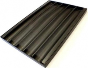 Лист для выпечки багетов UNOX TG 435 серии BLACK Baguette используется в пароконвектоматах, печах и пекарских шкафах на предприятиях общественного питания и торговли, в пекарнях и кондитерских. Канальная структура гарантирует правильную форму изделий, образующуюся в процессе выпечки, и предотвращает слипание изделий, увеличивающихся в размере в процессе расстойки. Антипригарное покрытие позволяет избежать прилипания продуктов к поверхности противня.