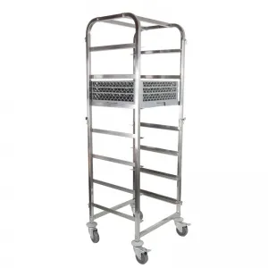 Тележка для хлебных лотков предназначена для транспортировки батонов. Удобная конструкция тележки позволяет избежать выпадения батонов из тележки во время транспортировки и на поворотах. Каркас тележки изготовлен из профильной трубы 25х25 и листового метала толщиной 1,5 мм